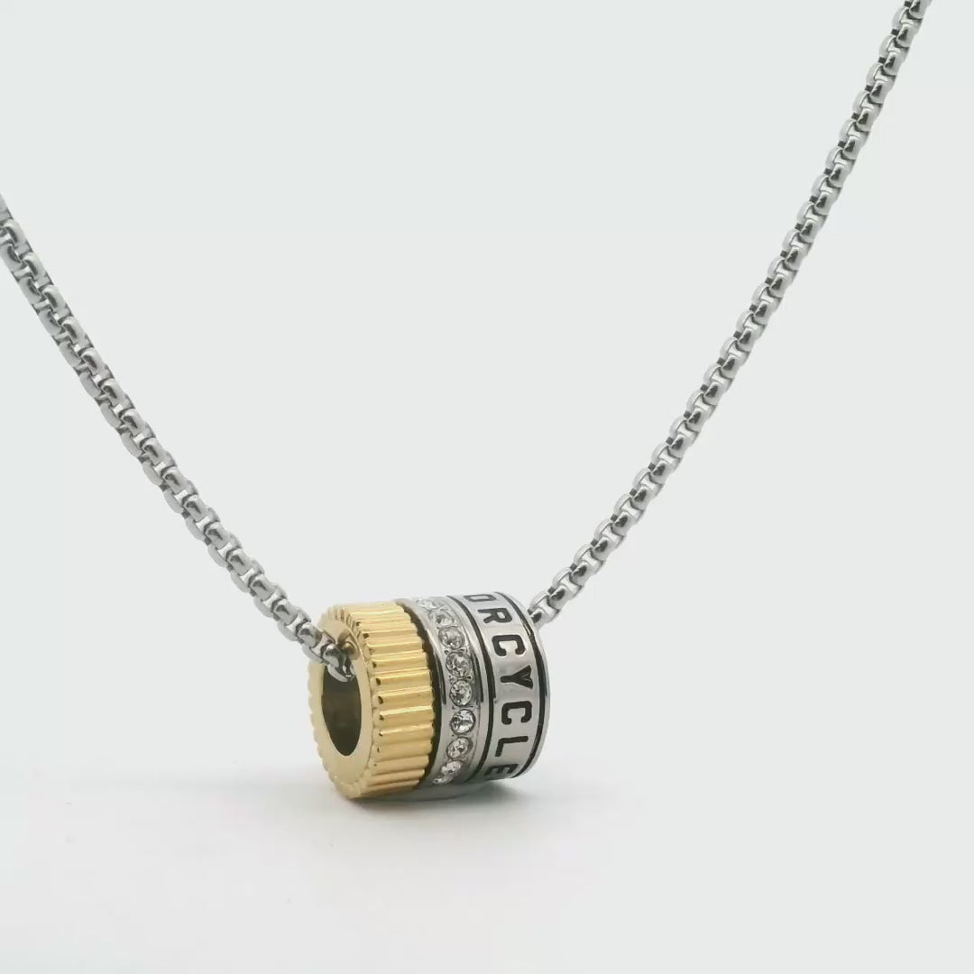 Unleash your bold and adventurous side with the High Gear Necklace. Crafted in durable stainless steel, this two-tone women's necklace features sleek rondel pendants adorned with sparkling white CZ stones. The cable chain and black lacquer finish add a touch of edginess. Elevate your style and take on any challenge with the High Gear Necklace!