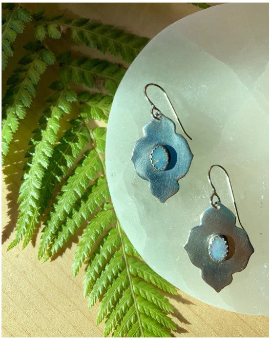 Shay Huth- Australian Opal set in a hand sawed flower design. Measuring at 2” and set in .925 sterling silver. |